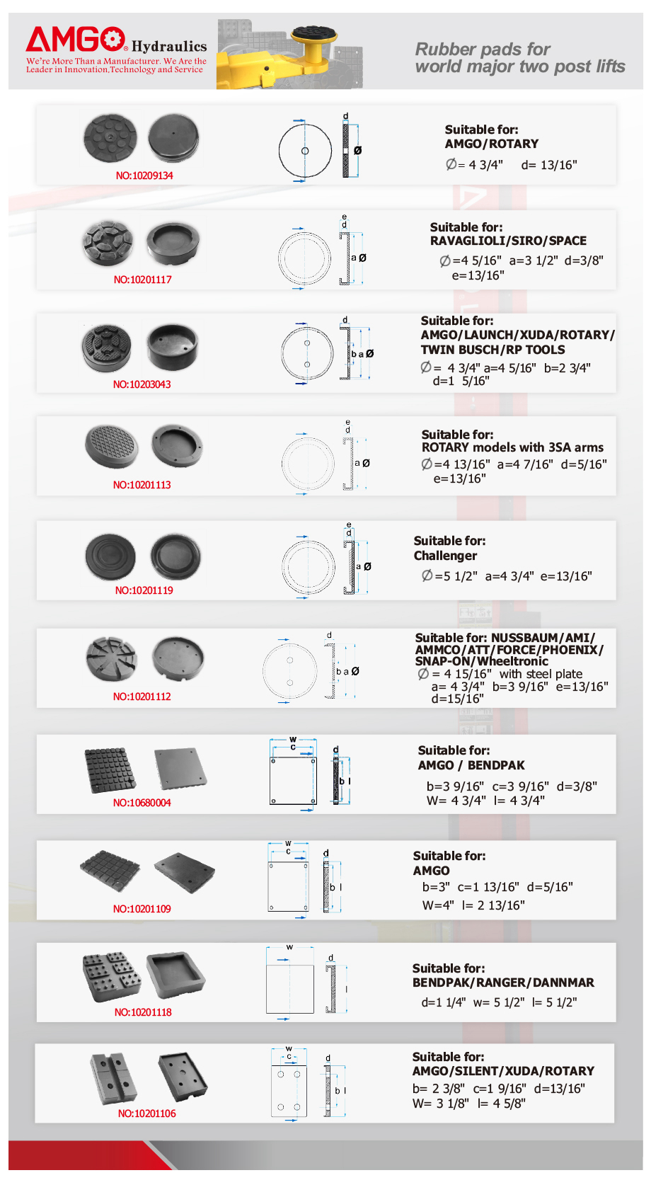 AMGO Hydraulics 10209134 Rubber Pad for 2-Post Lifts (1 unit)