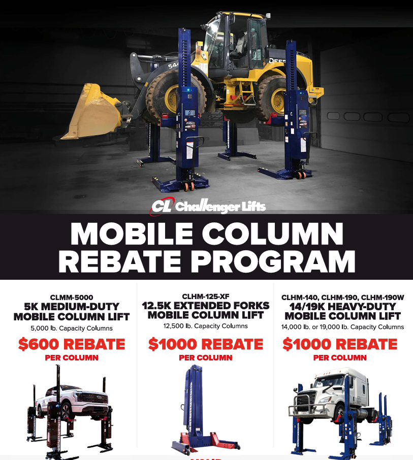 ☆☆☆☆☆no reviewsChallenger Lifts CLMM-5000 Lift 5K Mb 120V *Price is per unit CLMM MEDIUM DUTY MOBILE COLUMN LIFTS Bring the shop anywhere with Challenger’s medium-duty mobile column lifting system, capable of lifting 5,000 lbs. per column on any solid surface...$9,449.06$17,180.11