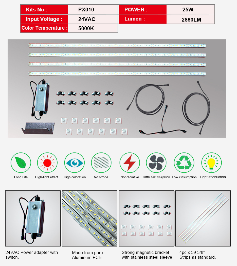 AMGO’S newest LED lights are designed environmentally friendly with low power consumption. Made from pure aluminum PCB, with strong magnetic absorption,they are easy to install, durable with good bend resistant and heat dissipation, suited for most large scissors lift in the market.
